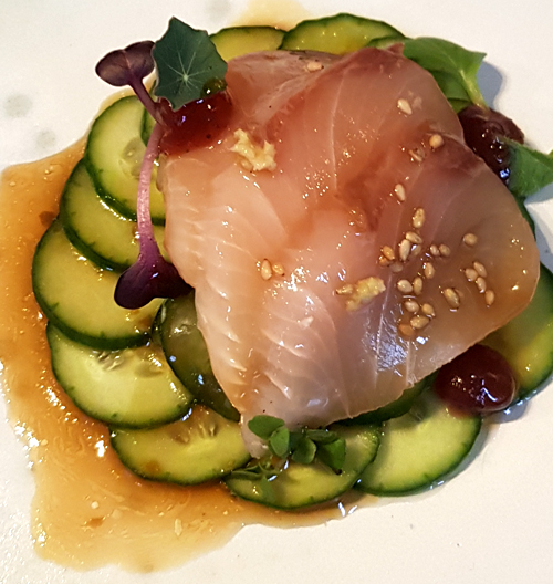 Der 1. Gang, das Sashimi vom Hamachi aus Völklingen, weil der Fisch dort