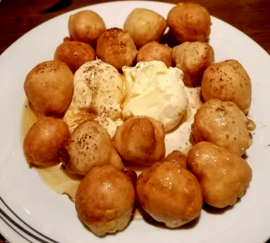 Lukoumades (wirklich köstliche Hefeteigbällchen) und einen Klacks