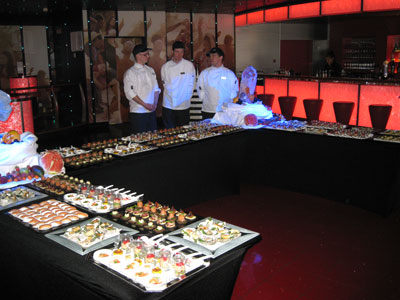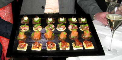 Das Menü 'Rossini einmal anders' begann in der Any Time Bar mit Blick auf Antwerpen, es gab Livemusik, reichlich Champagner und, wie es hieß, 'ein paar Kanapees'. Die Untertreibung des Jahres, es handelte sich um allerfeinste Köstlichkeiten, unter anderem gebratene Jakobsmuscheln, in Austernschalen serviert:
