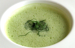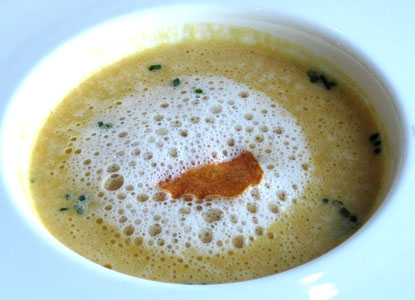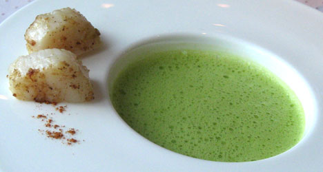 Kräuterschaumsüppchen mit gebratener Jakobsmuschel