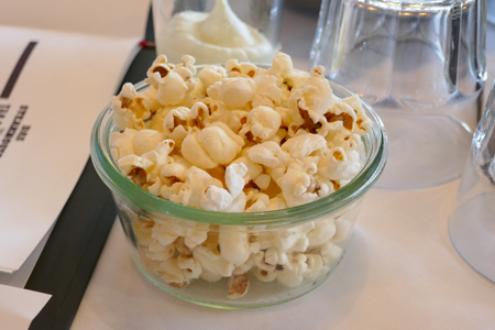 Vorweg stand auf den Tischen eine Glasschale voller Popcorn, ungewürzt