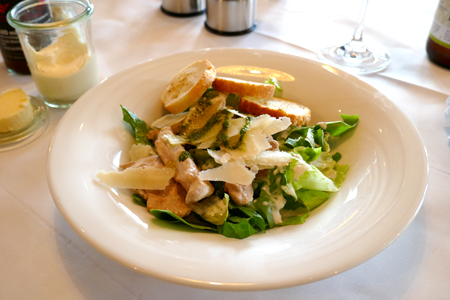 Der Salat mit Perlhuhnbrust kam sehr fleischlastig daher, aber was