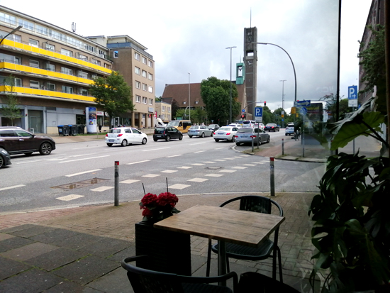 sechsspurige Kreuzung vor der Kirche am Wandsbeker Markt genießen: