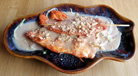 Zu 100% überzeugen konnten dagegen die Hühnchenspieße in Erdnuss-Sauce,