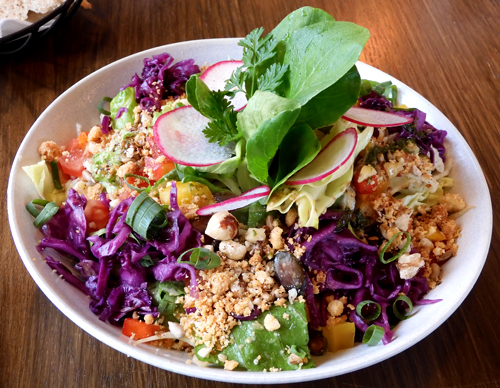 €), das war "Frischer gemischter Salat und Gemüse mit Gold gebackenem