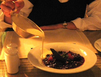 Nach wie vor ist die Rote Grütze mit flüssiger Sahne ein Muss. Sehr