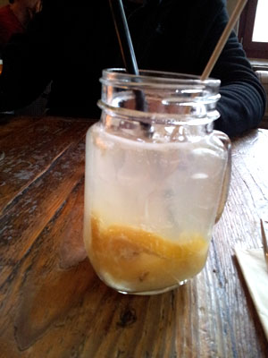 gab eine interessant verpackte Zitronenlimonade, die recht rustikal