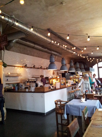Nachmittagskarte mit wenigen Gerichten. Das Ambiente der Bullerei ist