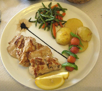 versehen mit einer leichten Zitronensauce. Die Kartoffeln dazu sahen aus