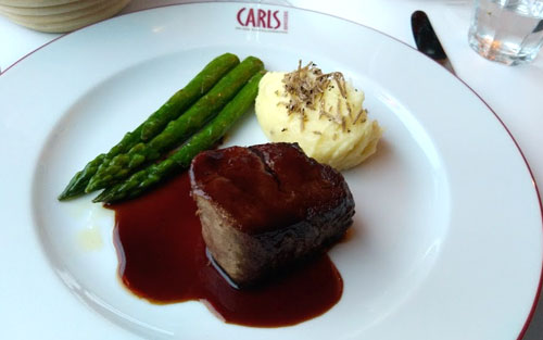 Der Hauptgang "Filet vom Kalb, Portweinsauce, Carls Trüffel Püree