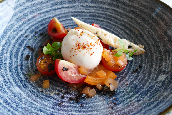 Die Vorspeise "Burrata, Bunte Tomaten, Melone und Olivenbrot" wirkte