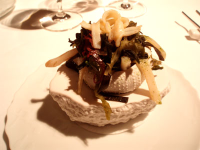 Salat aus Seeanemonen, Schwertmuschel, Seegurke und marinierten Algen