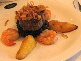* "Surf and turf" vom Holsteiner Rinderfilet und Tiefseegarnelen