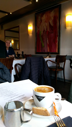 Fensterplatz im fast leeren Restaurant zu und zeigte sich auch für den
