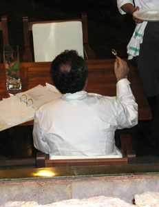 Die Getränkeauswahl ist üppig, der 2006er Augustus Chardonnay aus dem Penedés zeichnete sich durch Leichtigkeit und Charakter aus, war allerdings mit 45,- Euro um 10,- Euro teurer als der 2003er vor einem Jahr. Lob gebührte dem Oloroso (Sherry). Und richtig spitzenmäßig war der Kaffee zum Abschluss, so etwas weiches und aromatisches habe ich lange nicht bekommen.