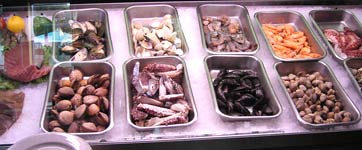 Auffällig ist zunächst eine üppige Fischtheke, die durchaus an solche