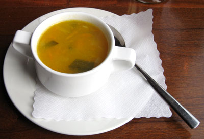 Vorweg kann man wie gewohnt zwischen Suppe und Salat wählen. Der Salat