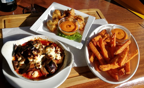 'SÜSSKARTOFFELPOMMES, CHAMPIGNONS IN TEMPURA, AUBERGINE/PIKANTE