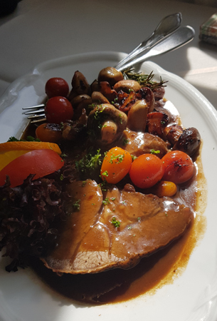 Die beiden bestellten Hauptgerichte: Lammbraten und Lammsteak stammten