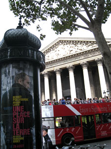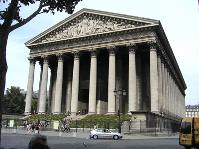 Apropos billig: Wer für den Luxus lieber weniger Geld ausgeben möchte, kann das kleine Bistro noch eine Tür weiter rechts aufsuchen. Dort gibt es die Salate und belegte Baguettes von der Karte in der Kühlung, etwa zum halben Preis. Ebenfalls erhältlich sind natürlich Croissants, Baguettes, Schokobrötchen und (wirklich köstliche!) Rosinenschnecken. Viele Gourmets decken sich dort ein und begeben sich dann auf die breiten Stufen der Madeleine, um zwischen römischen Säulen und roten Blumen in Ruhe die Köstlichkeiten zu genießen.
