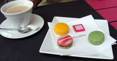 Ein Besuch bei Fauchon lohnt sich auf jeden Fall. Wer davon noch nicht arm geworden ist, kann das im Ladengeschäft nebenan erledigen, dort gibt es alle nur erdenklichen Köstlichkeiten. Besonders zu empfehlen sind der Lavendelhonig und die Auswahl an Terrinen. Wir haben uns nach einer Probierrunde in die Perlhuhn-Terrine ('Terrine de Pintade') mit Calvados verliebt, das Glas gibt es für Fauchon-Verhältnisse sensationell billige 6,50 Euro. Es enthält eine geniale Geschmackskomposition aus Perlhuhn, Apfel und Pfeffer und ist auf frischem Baguette geschmacklich kaum zu übertreffen: