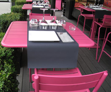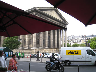 Man hat eine schöne Sicht auf die Madeleine und kann im Außenbereich gelegentlich verständnislose bis neidische Blicke aus den Stadtrundfahrt-Bussen genießen: