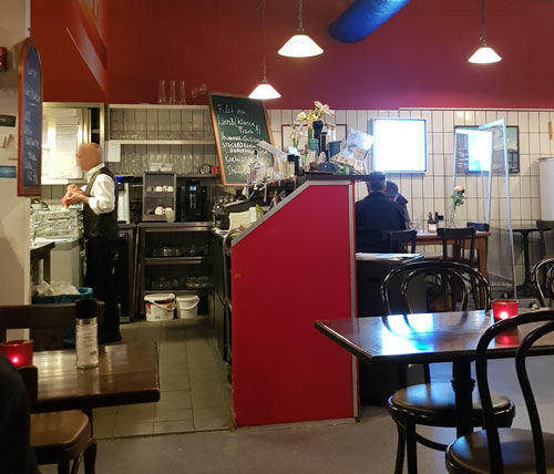 größerer Imbiss mit Sitzgelegenheiten, etwas rummelig ungemütlich - und