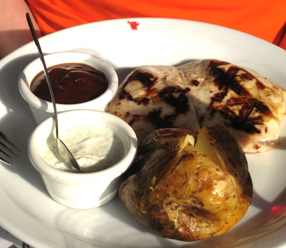 Die Kartoffel dazu war in Ordnung und etwas weich, die Sauce dazu nicht besonders würzig, beinahe fad. Offenbar kennt man in Paris keinen Quark - jedenfalls habe ich nirgendwo welchen entdecken können.