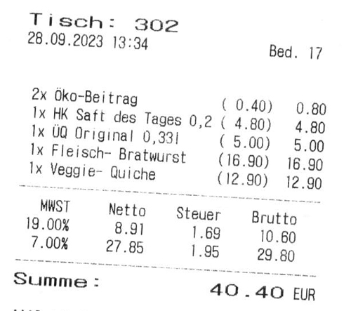 Auf der Rechnung fand sich ein ungewöhnlicher Posten, eine 'Öko-Beitrag'