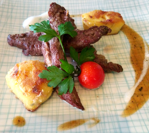 Auch nicht von schlechten Eltern das Ribeye-Steak vom Kalb auf Bohnen: