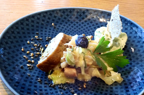 --- An den letzten Tagen des Jahres 2025 gab es nur noch die Grund-Speisekarte, wohl wegen bevorstehender Betriebsferien nicht mehr die Empfehlungskarte. Aber natürlich war auch hier etwas Leckeres zu finden. Im Grunde agierten Personal und Küche perfekt wie seit Jahren, auch das Angebot der Speisen hat sich glücklicherweise nur in homöopathischen Dosen geändert. Insbesondere im Bereich der Vorspeisen fanden wir lang Bewährtes wie den warmen Ziegenfrischkäse.