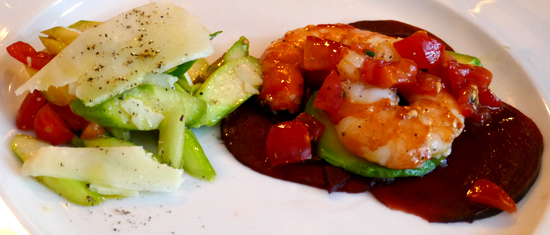 Spargelsalat mit Parmesan / Rote Beete Carpaccio mit gekochten Gamba