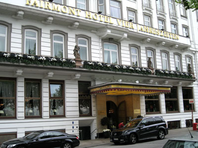 natürlich bei strömendem Hamburger Regen, in den Grill des Hotels Vier