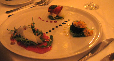 bestand aus einem hübsch angerichteten bunten Dreierlei, von dem aber