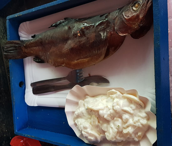Fisch ist beachtlich, es gab Bückling, Makrele, Heilbutt, Butterfisch,