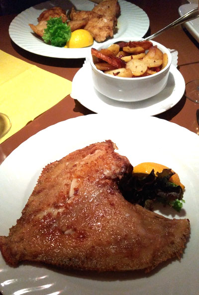 Ebenfalls von feinster, weißfleischiger Qualität war der Steinbutt, dank leichter Bemehlung ebenfalls leicht knusprig - eine Freude für 24,- Euro.