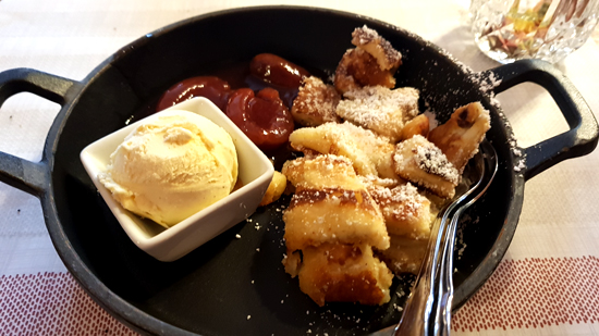 nach Pilzen schmeckte, der Knödel allerdings eher geschmacklich