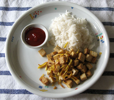 Asiatisch gut gekocht'Asiatisch gut gekocht!' ist ein schön aufgemachtes, übersichtliches und eher anfängergeeignetes Kochbuch. Allerdings ist das Format für die Küche unpraktisch, das broschierte Buch lässt sich kaum aufgeschlagen hinlegen.Für meinen Geschmack nimmt die Erklärung von Grundzutaten ziemlich viel Raum ein. Die Grundsortierung richtet sich nicht nach Fleisch, Fisch, Gemüse, sondern nach elf verschiedenen asiatischen Ländern. Das ist hübsch anzusehen und auch interessant, aber nicht unbedingt hilfreich, wenn man etwas sucht. Die Rezepte selbst sind stimmig und funktionieren auch, mir war jedoch nicht in jedem Fall klar, ob ein Gericht nur als Vorspeise taugt oder ob es schon voll sättigt. Ein Beispiel dafür war der 'gebratene Tofu mit knusprigem Ingwer' von Seite 200, der zwar im Ergebnis anders aussah als im Buch, aber dennoch geschmacklich voll überzeugte: