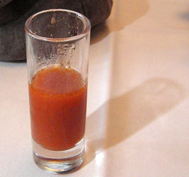 Im Oktober 2011 lässt sich feststellen, dass man in der Küchenwerkstatt das Kochen nicht verlernt hat. Wir bestellten mittags ein Lunchtablett, das mit 18,- Euro preisstabil geblieben ist. Vorweg bekamen wir als Küchengruß eine Kleinigkeit von der Tomate mit Mozzarella - lecker und angenehm säuerlich, nach mehr schmeckend: