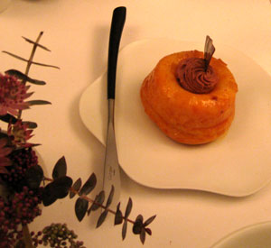 Kaum zu glauben, dass Wachtelbrüste derart saftig auf den Teller kommen können - sie können aber. Und ganz ohne irgendwelche Hack- oder Pastetenfüllung. Die orientalischen Früchte und karamellisierten Zwiebeln bildeten einen gelungenen Gegenpart zum angedeuteten Holzkohlearoma. Dazu wurde ein gefälliger Spätburgunder empfohlen.
