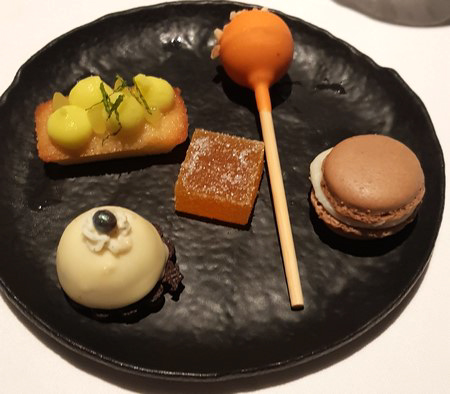 gelblich aussehende Amuse gueule war ein fruchtiger Macaron mit einem
