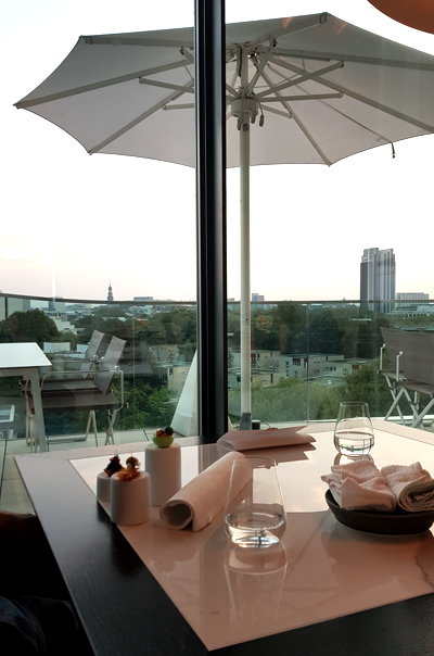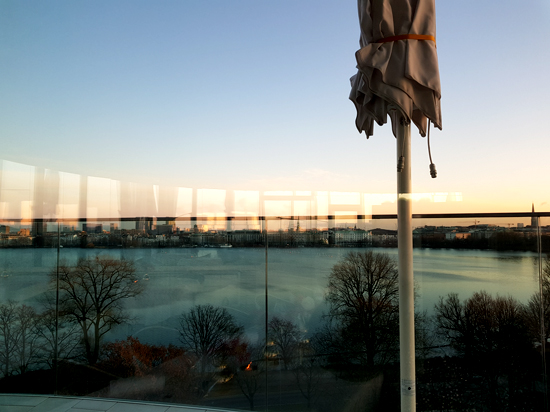 Wir waren zu viert, saßen mit sehr schönem Blick auf die Alster und