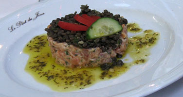 auf Lachstatar auf Linsen und daher kann ich natürlich nicht sehr