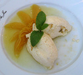 Zitronenmousse mit Orangensalat serviert, leider fanden sich kleine