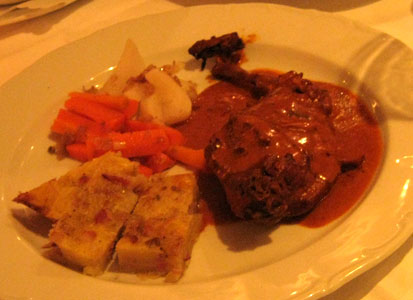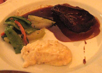 geschmorte Kalbfleisch. Nicht zu vergessen das Rotweineis zum Nachtisch,