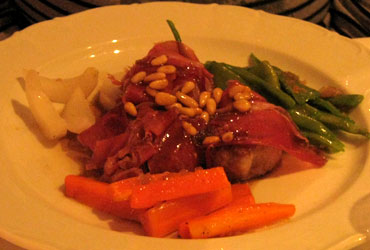 vom Schweinefilet mit Pinienkernen daher, für Fleischliebhaber unbedingt