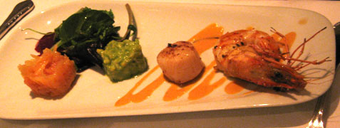 Spanische Köstlichkeiten mit Jakobsmuschel, Babycalamares und Scampi