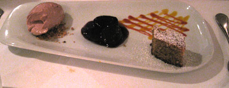 Mandeltorte aus eigener Herstellung, Zimtpflaumen/Rotweineis