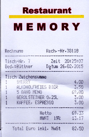 Das fünfgängige Memory-Menü (69,- €) sollte es sein. Es begann spannend