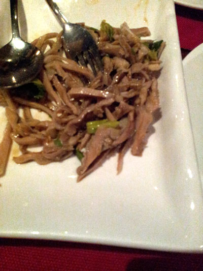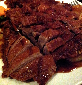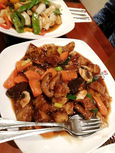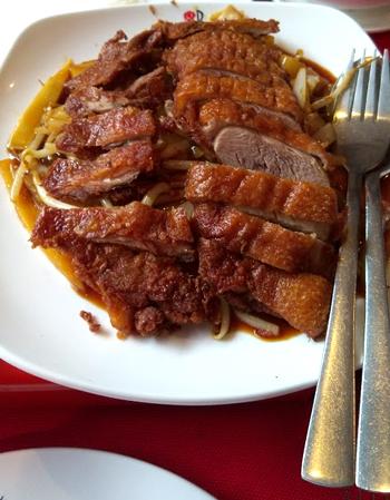 Qing-Tian-Art und Ente kross gebacken mit diversen Gemüsen (13,50).